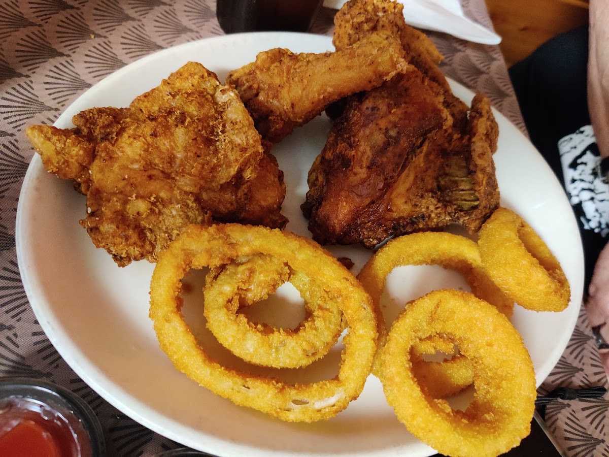 I ordered the Thursday special which was homemade chicken and noodles with mashed potatoes and green beans the serving size was more than enough. The food was amazing and our server was wonderful she made sure we were happy and had what we needed. Would definitely recommend to stop and try or even make the drive from Columbus i know I will make the drive to come back