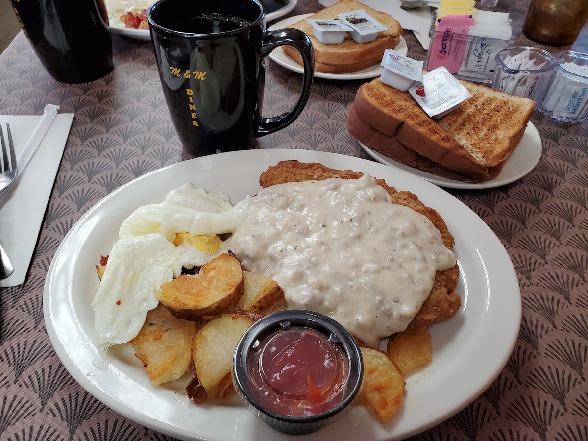 The portions are hearty sized that I need a box, so I really get two meals. Everything I’ve had on the menu has been home cook’n great! I highly recommend the open roast beef Sandwich and the Country fried steak dinner. Breakfast is also great! I recently ordered M&M on DoorDash and the country fried chicken, mashed potatoes with gravy and slaw was absolutely delicious!